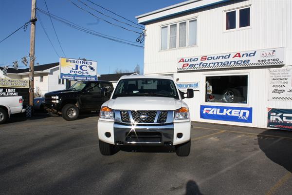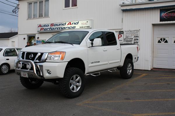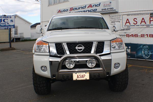 This is the 2009 Titan project, Gerald's truck from Auto, Sound & Performance. The truck has been enhanced to include some great interesting components such as a 6" Pro Comp Extreme lift, Bushwacker Pocket Style fenders, U Guard Bull Bar and 35" Pro Comp Tires on 20"mag wheels.